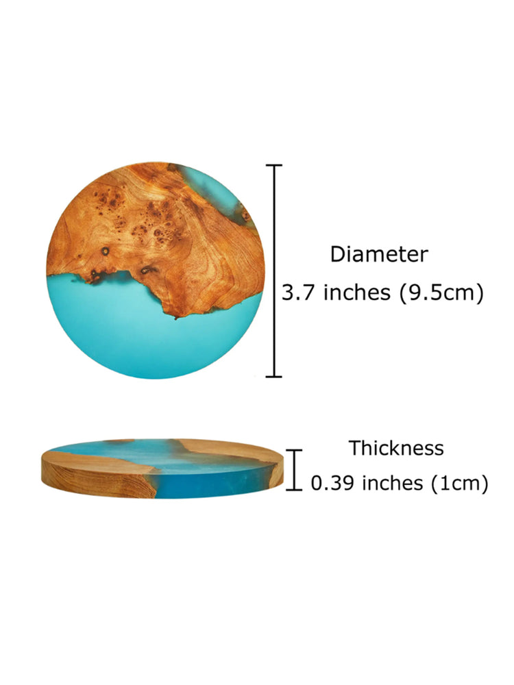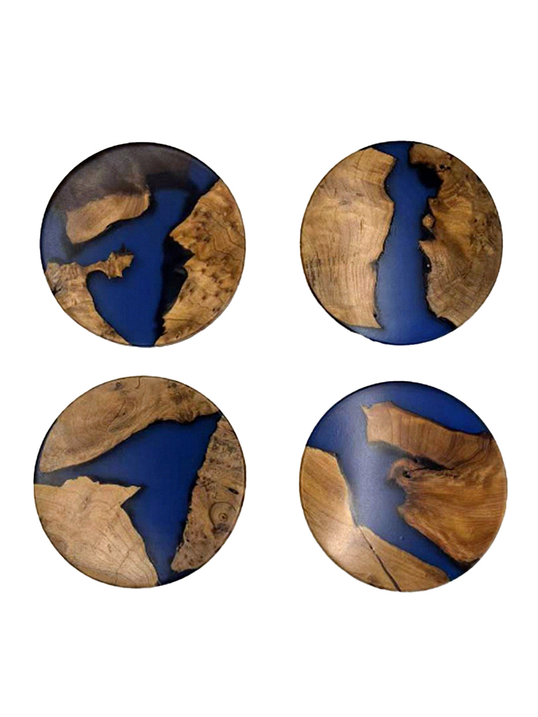 Handmade Blue Epoxy Resin & Wood Coaster Set